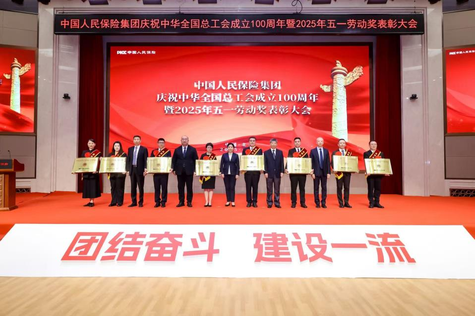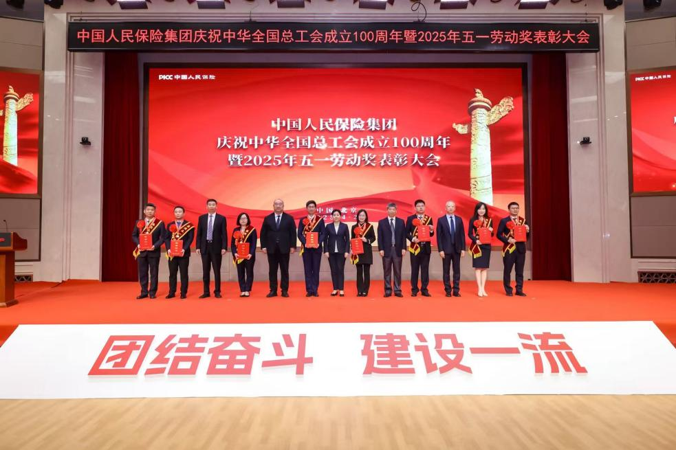 4月29日下午,中國人民保險集團舉行慶祝中華全國總工會成立100周年暨2025年五一勞動獎表彰大會。集團黨委書記、董事長丁向群同志致辭,代表集團黨委向受到表彰的集體和個人表示熱烈祝賀,向在本職崗位不懈奮斗的人保職工致以崇高敬意,向全系統廣大工會干部表示親切慰問。集團黨委班子成員出席活動并為獲獎代表頒獎。